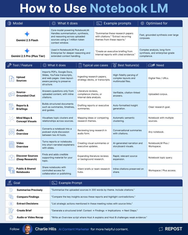 Here is a great chart that outlines the different use cases for NotebookLM: